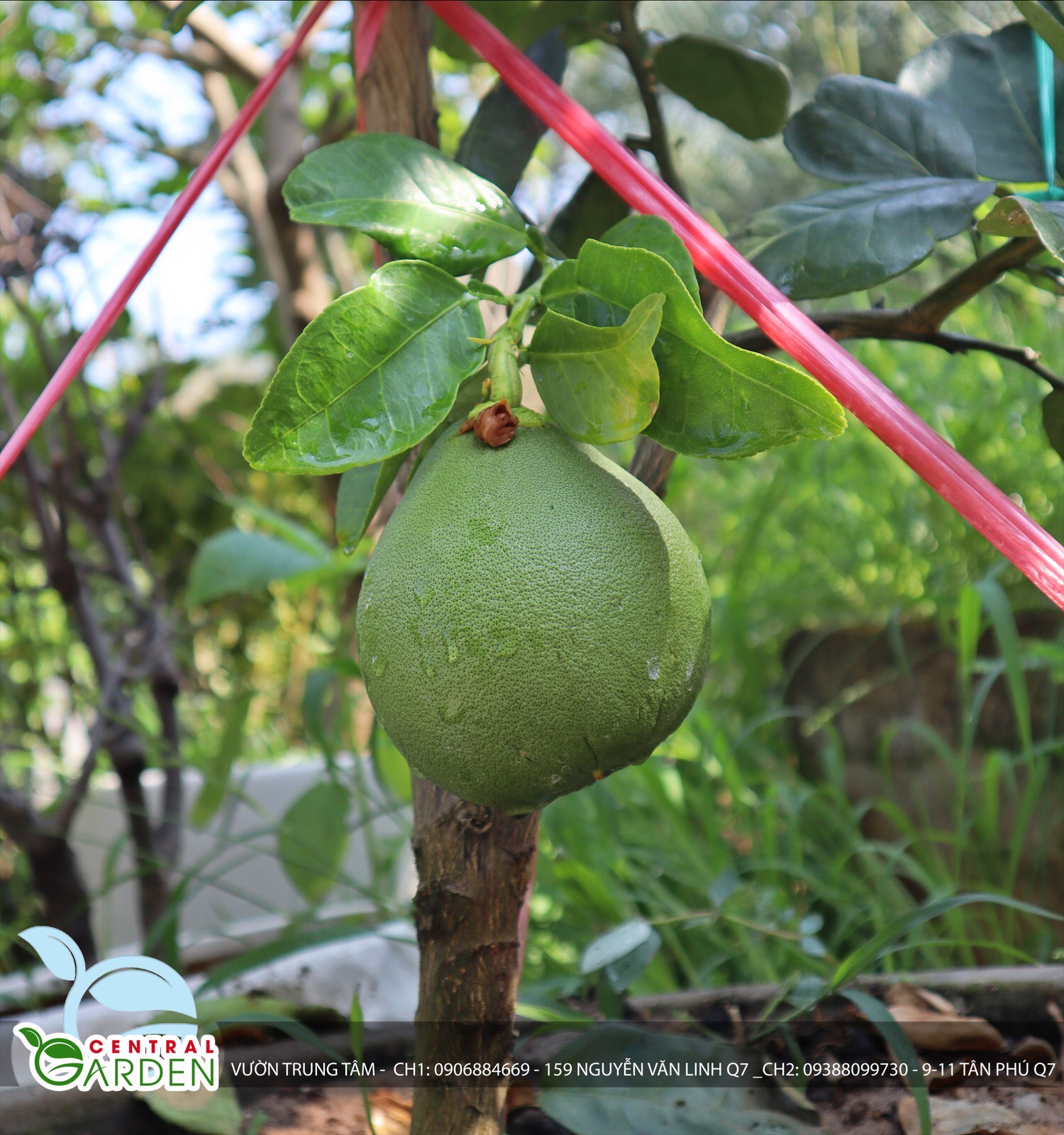 Cây trồng: Cây bưởi da xanh có thân cây to, lá xanh đậm dày dặn và khó phát triển, thường ra hoa và trái ở nhánh phát triển từ thân cây.