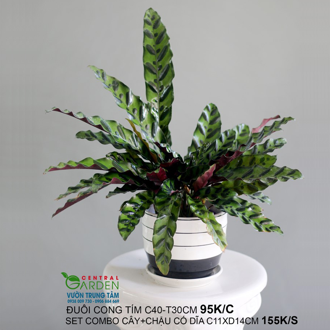 Lá cây dài thon dần về đầu lá, lá nhẵn, mềm, không có răng cưa, mặt trên của lá thường có màu xanh. Mặt dưới lá có màu tím, dựa vào mặt dưới mà người ta gọi là cây Đuôi Công Tím