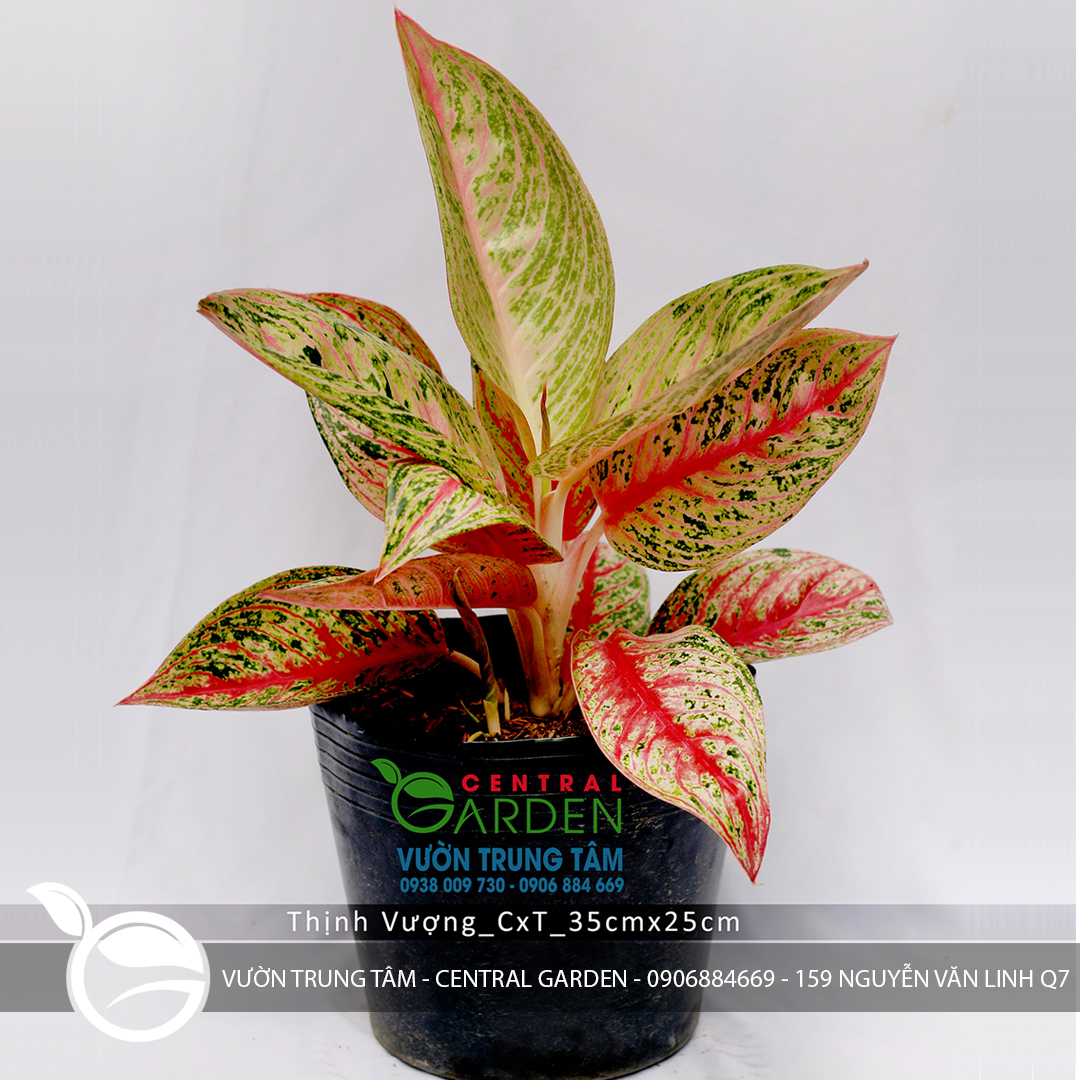 Thịnh vượng là loại cây lá xanh có pha lẫn chút hồng, bản lá to, dễ trồng, dáng thân thẳng, cành màu trắng ngà.