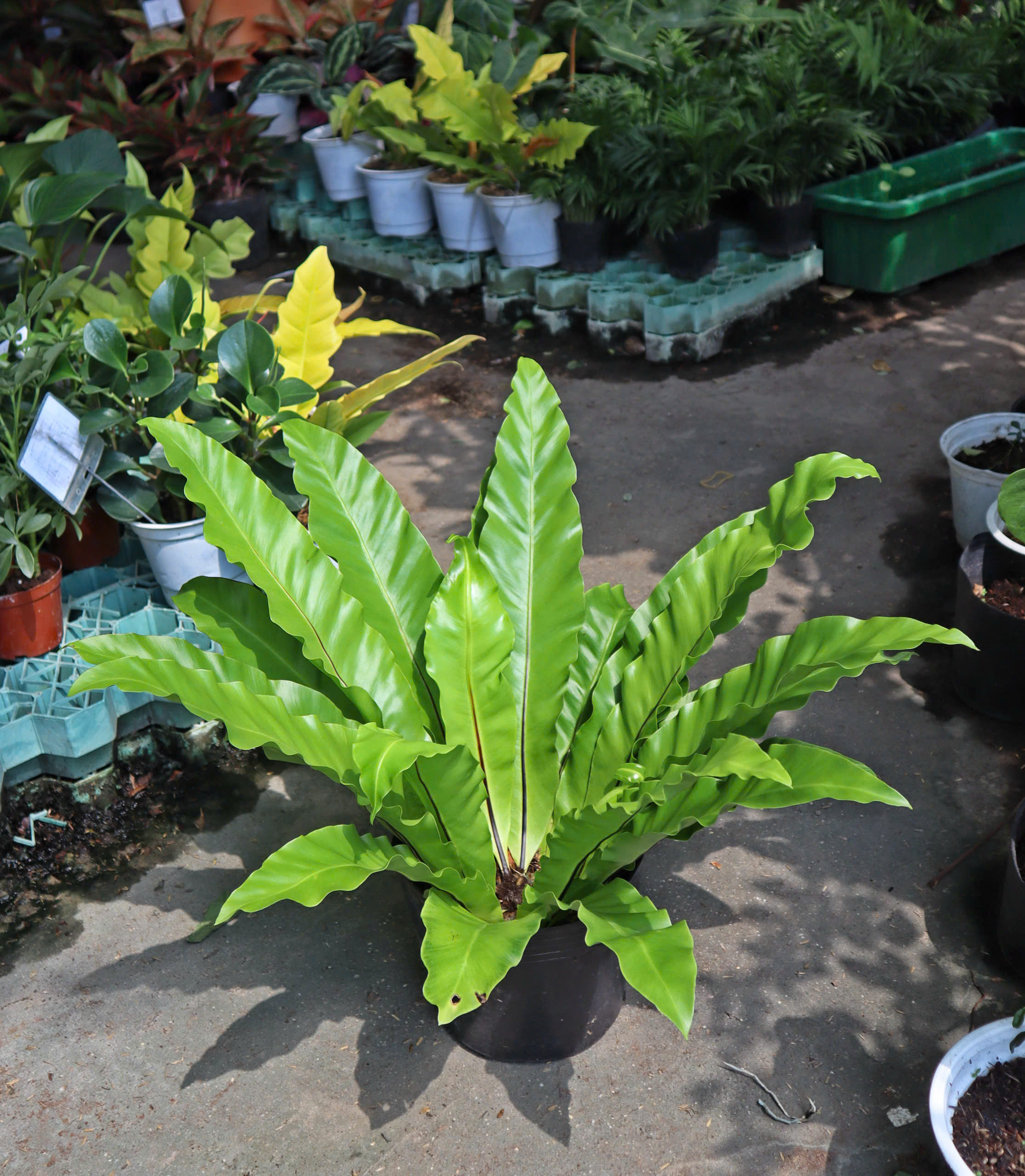 Lá cây ráng ổ phụng dày, to, mọc thành hình hoa thị giống như một tổ chim.
