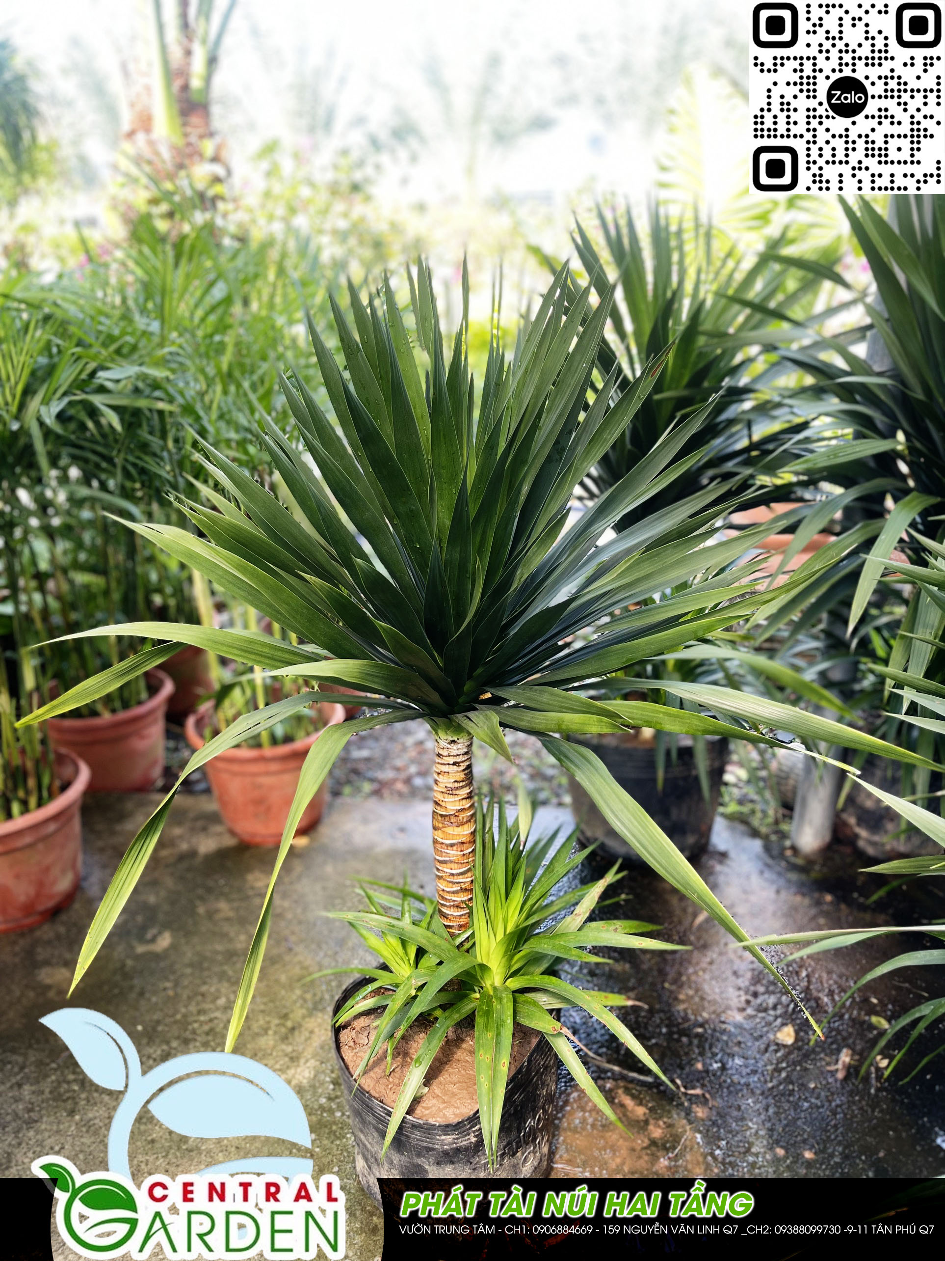Cây phát tài núi có tên khoa học là Dracaena draco L, cây ưa sáng và chịu bóng bán phần. Cây còn có hình dáng thân thẳng với chùm lá xanh trên cùng mỗi thân rất độc đáo nên ngày nay, cây rất được ưa chuộng trong việc trang trí nội thất trong nhà, trang trí công viên, khu đô thị, resort... Cây chịu hạn tốt nên ít khi phải tưới nước, không cần chăm sóc cầu kì.