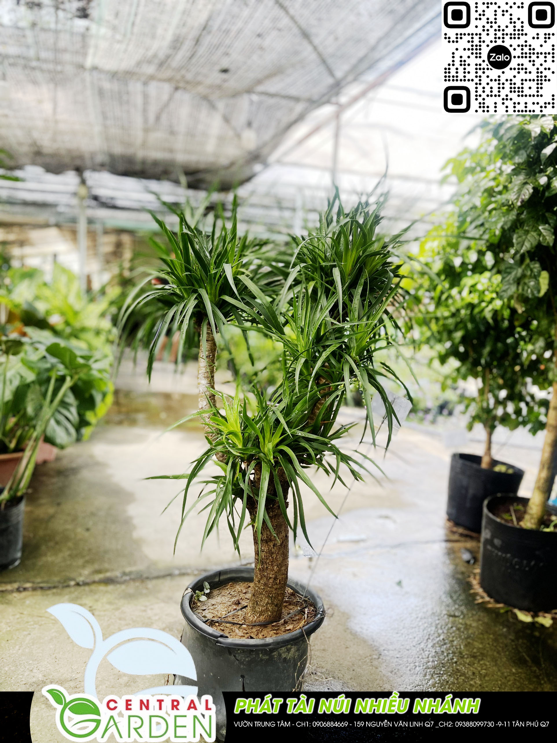 Cây phát tài núi có tên khoa học là Dracaena draco L, cây ưa sáng và chịu bóng bán phần. Cây còn có hình dáng thân thẳng với chùm lá xanh trên cùng mỗi thân rất độc đáo nên ngày nay, cây rất được ưa chuộng trong việc trang trí nội thất trong nhà, trang trí công viên, khu đô thị, resort... Cây chịu hạn tốt nên ít khi phải tưới nước, không cần chăm sóc cầu kì.