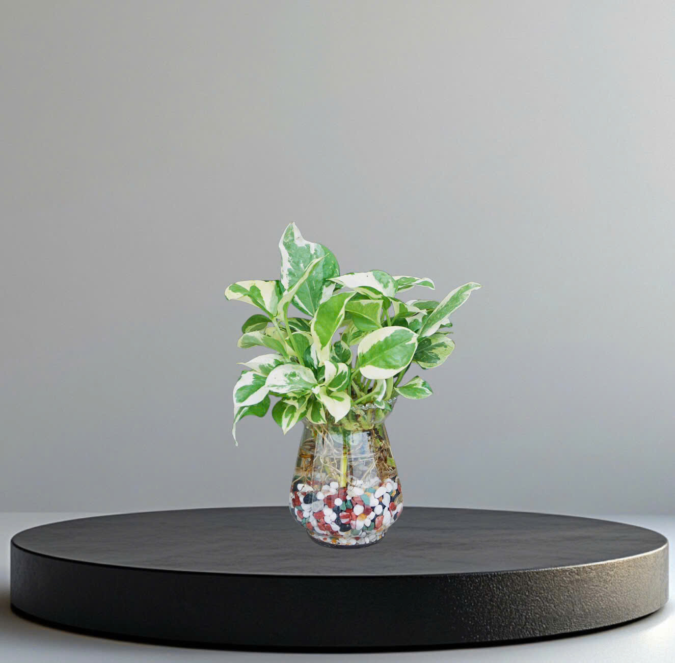Trang trí nội thất: Trầu bà cẩm thạch thủy sinh với màu lá độc đáo và dáng cây leo mềm mại là lựa chọn tuyệt vời để trang trí bàn làm việc, kệ sách, hoặc không gian phòng khách. Cây giúp mang lại sự tươi mát và làm dịu mắt sau những giờ làm việc căng thẳng.