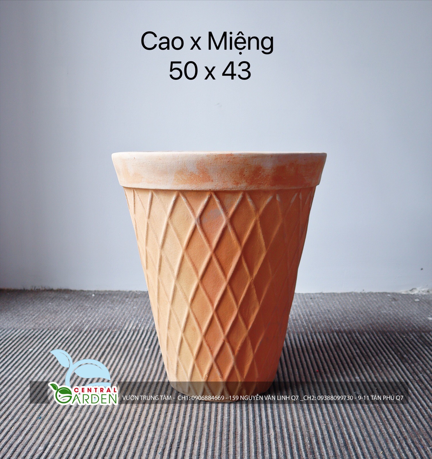 Chậu được làm từ chất liệu đất nung, có khả năng hút nước tốt, giúp cây không bị úng nước.